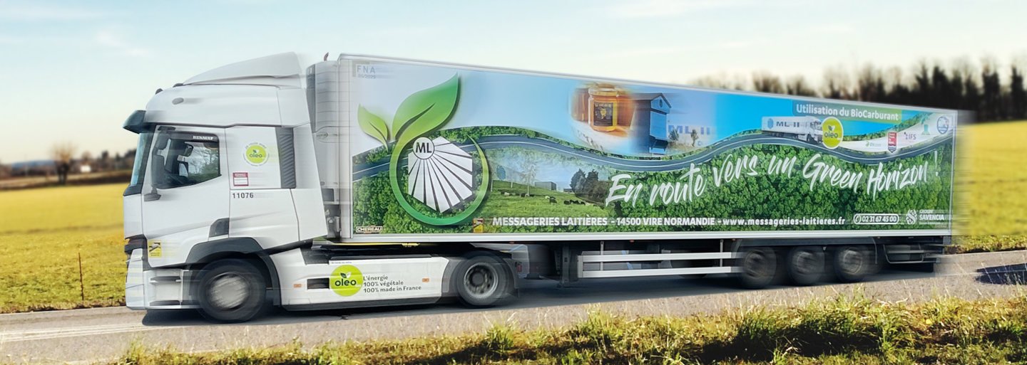 Réduire notre empreinte carbone est une priorité. Notre flotte de 23 ensembles roule exclusivement à l’Oleo 100, un biocarburant 100% colza français permettant une réduction de 60% des émissions de CO2